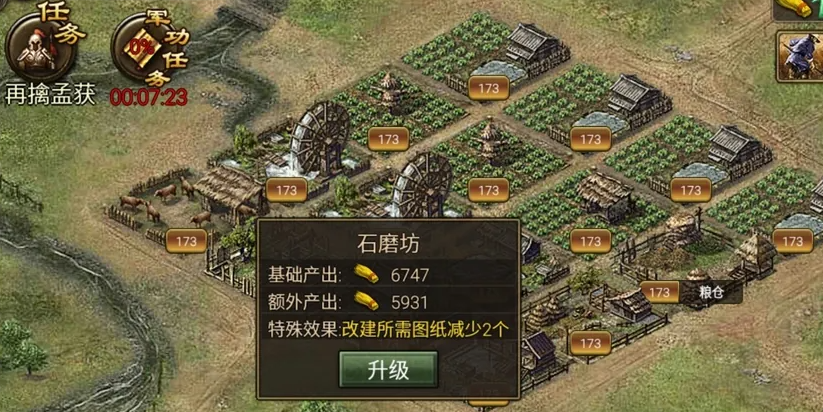 农田升星的前提条件是完成171级副本解救马均,并且农场等级达到165级,同时木场需全部改造完成。首次开启改造时,NPC会赠送15张图纸,后续则需要通过排名奖励获取。改造顺序一般为农田、兵营、矿场,建议先将一处农田升至三星再改造下一处,以提高效率。升星不仅能提升农田产量,还能解锁特殊效果,如增加粮仓上限或提高抢收收益。