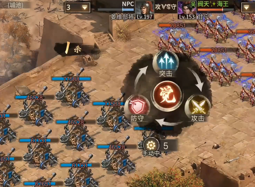 姜维这家伙在城池地形特别难缠,战法没法格挡,所以咱们得靠地形将吕蒙来扛。吕蒙的装备要堆强防和血量,保证他能1打2。开场让许褚先上,牺牲一排后剩下三排打对面一排,战法自动触发能削掉不少血量。接着换吕蒙上场,第一排尽量打残对面三排,吃下敌方战法后靠剩余兵力反打,这里很看脸,但只要吕蒙能留一排到第三阶段就成功了一半。