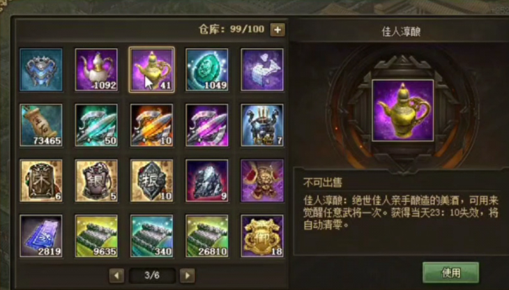 酒类道具是提升武将能力和战略资源的核心物品,主要分为觉醒酒、杜康酒、活动酒等类型。觉醒酒用于武将觉醒,可直接在背包中点击使用,但需注意杜康酒的优先度更高,必须先用完或出售杜康酒才能使用觉醒酒。杜康酒通过功勋榜或活动获取,使用后能触发十团火焰的觉醒效果,且不与煮酒活动叠加,即使武将已完全觉醒,仍可提供临时属性加成。