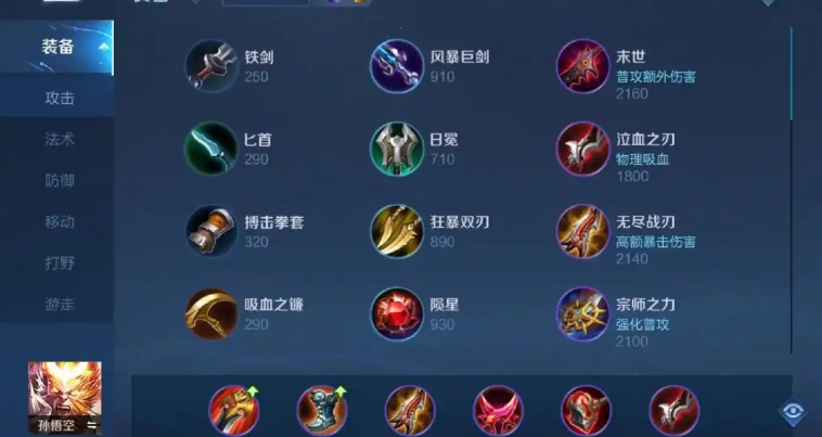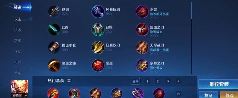 孙悟空的出装核心离不开那么几件装备。首先是无尽战刃,这件装备几乎是所有玩猴子玩家的第一件核心大件,它提供的物理攻击、暴击率和关键的暴击效果提升,与孙悟空自带的暴击属性完美契合,能让他前期的伤害产生质变,具备了单独击杀敌方后排的能力。出了无尽之后,通常接着会做宗师之力,它不仅增加物理攻击和暴击率,其被动强击在使用技能后强化下一次普攻,正好配合孙悟空每次释放技能后强化的棍击,能打出爆炸般的连招爆发。有了这两件装备打底,孙悟空的中期威慑力就非常足了。紧接着,你需要根据对手的阵容来补充穿透装备,如果敌方坦克英雄较多、物理防御较高,碎星锤提供的百分比物理穿透是必不可少的;如果对面脆皮多,也可以考虑先出破军来进一步提升收割能力。
