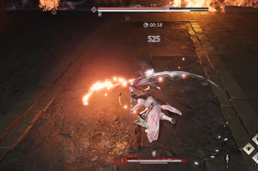 在第一阶段千夜的攻击包括开场的一次快速打击玩家可在听到提示音后立即闪避。特别要注意五连返红光技能,其中举刀的红光技必须成功弹反,否则会连续受到五次高额伤害。这个阶段攻击频率较低,玩家可以多利用卸势和走位来规避常规攻击,并熟悉BOSS的出招前摇,为后续阶段打下基础。保持距离输出连招并补上平A,能有效消耗BOSS血量,同时避免被突然的后跳斩击中。