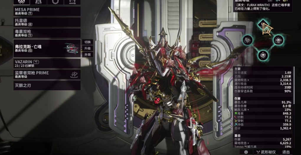 女枪P与普通女枪在基础属性上存在显著区别。女枪P在30级时拥有405点生命值,高于普通版的375点;其护甲从65点提升至85点,能量上限也从150点增加至188点。这些提升直接增强了战甲的生存能力和技能续航。最关键的区别在于极化槽,女枪P初始自带4个极化槽,而普通版只有2个,这使得P版在安装强化模块时更为灵活,能更早地达成高强度的配卡组合,成型速度更快。