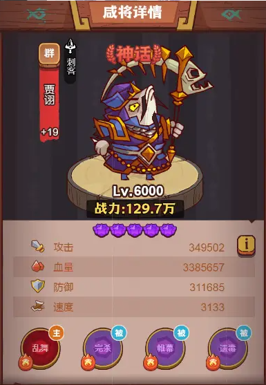 除了这些直接给队友加攻击的,还有一种特殊的增伤方式,那就是通过削弱对手来达成。贾诩就是这方面的典型代表。他的一个关键被动技能,在触发之后,会让他普通攻击锁定敌方场上血量最低的目标,并且在命中时大幅降低该目标的防御属性,同时还会削减其减伤和暴击抵抗能力。这一套组合拳下来,等于是把对手的盔甲给扒掉了一大半,让我方后续的所有攻击打上去都更疼。这种降低敌方防御的效果,在实际战斗中带来的团队伤害提升,丝毫不亚于直接给我方加攻击力。所以在面对高防御的厚重型boss时,带上贾诩往往能起到奇效。