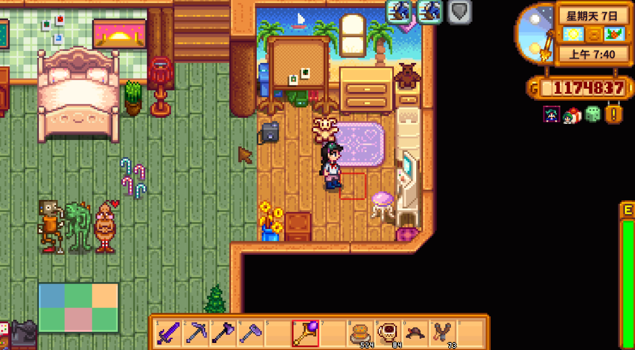 结婚还能带来实质性的资源与状态增益。快乐的配偶会不定期为玩家准备早餐或赠送特殊礼物,这些礼物可能包括能恢复体力的食物、稀有的布料或实用的装备道具。当与配偶的友谊值达到一定高度(如12.5心)时,玩家还能获得一个珍贵的星之果实,用于永久提升体力上限。每日与配偶的互动如拥抱或亲吻,可以立即消除玩家的疲劳状态,相当于提供了一次额外的精力恢复机会。