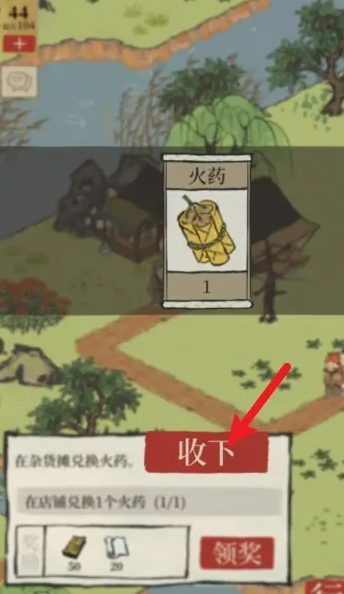 在集齐所有材料后,玩家可以前往地图中的商店进行火药兑换。商店通常位于湖旁或其他明显位置,玩家通过交互界面选择火药选项,并提交火药图纸、硝石和野草即可完成兑换。获得火药后,玩家需消耗额外体力来使用它,例如炸开阻挡道路的巨石,从而继续探索或完成任务。