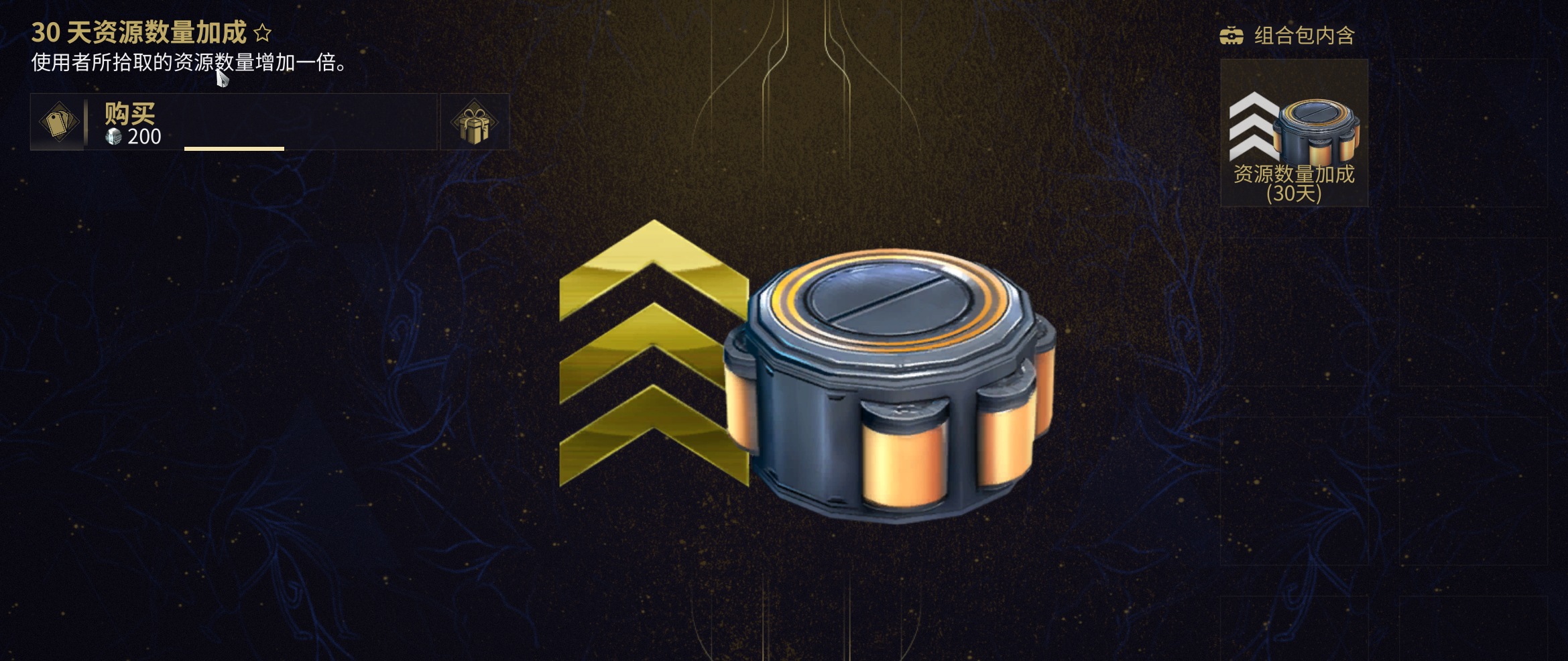 黄盒子的主要获取途径有两种,一是直接在游戏商城使用白金购买,二是依靠每日签到随机获得。这种道具的正式名称是资源数量加成卡,其核心效果是让你在任务中拾取到的资源数量直接翻倍,例如原本获得一个奥罗金电池,激活黄盒子后就能拿到两个,如果恰好遇到游戏内的双倍资源活动,效果还能叠加,收益非常可观。