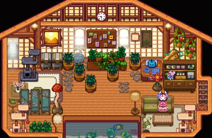 房间的布置并非一劳永逸,后期的维护与调整同样重要,定期更换或调整家具位置可以带来新鲜感。利用季节变化更替相应主题的装饰是一个好方法,例如在春季摆放花卉盆栽,而在冬季增添暖炉等季节性元素。装修材料的获取途径多样,可以通过商店购买、农场生产或完成任务获得,例如地板和墙纸每天会在皮埃尔的杂货店随机刷新。在多人游戏时,还需为联机玩家预留共同活动的空间,并确保联机小屋的内部装修与其他房间保持风格的延续性。