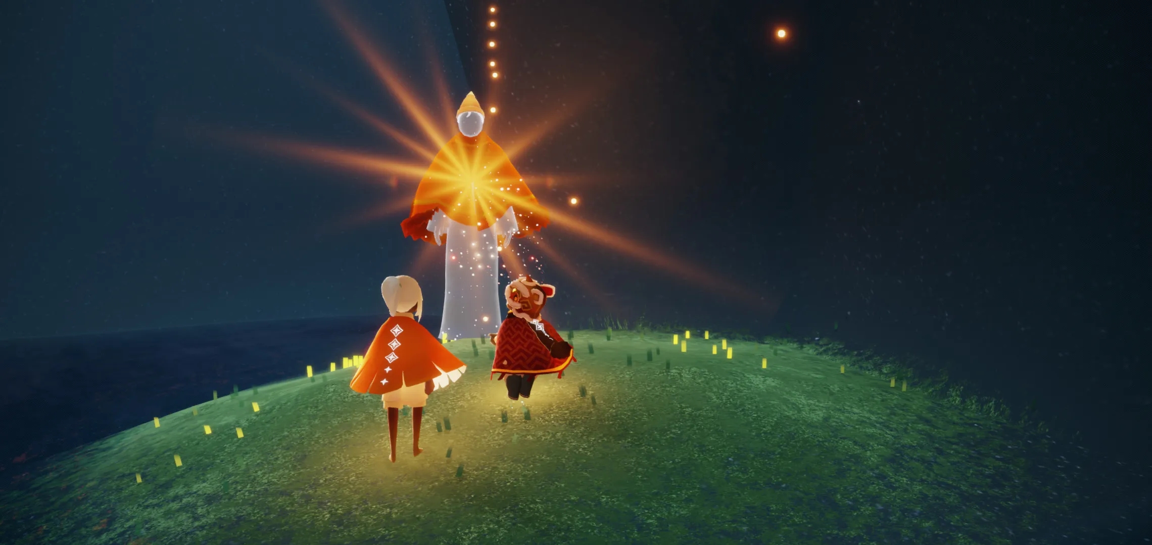 坠落之光的玩法延伸价值极高,除基础指引外,它还是找回失落光之翼的关键工具,当光之翼被冥龙撞落或掉入黑水,点击角色呼唤坠落之光,光点会精准指向失落光之翼的位置,帮助玩家快速寻回。在季节活动期间,坠落之光会变为对应季节的专属色彩,指引玩家找到季节先祖与季节蜡烛,助力完成季节任务与兑换限定道具。熟练运用呼唤坠落之光的技巧,能大幅降低探索难度,让玩家更顺畅地解锁天空王国的全部内容。