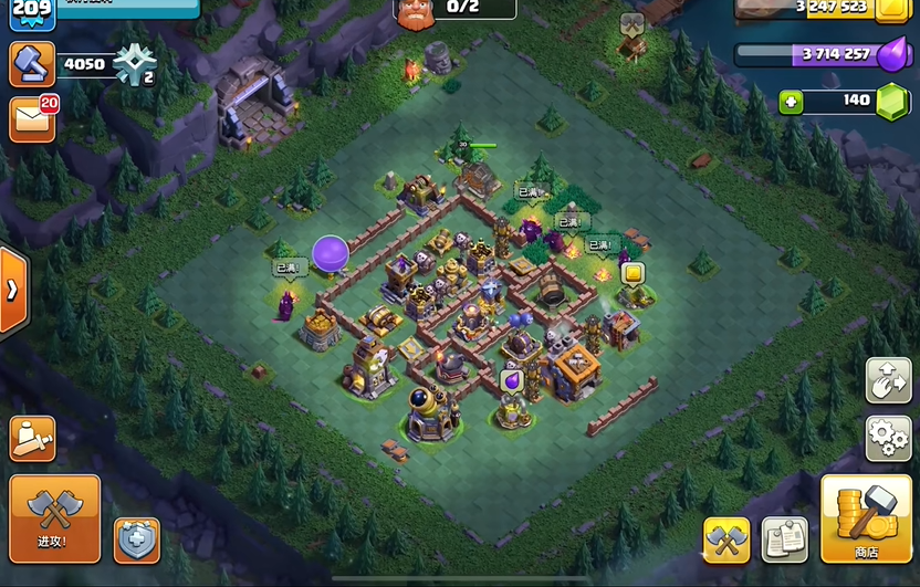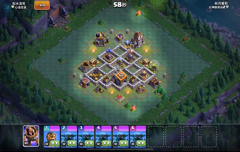 城墙搭建采用分层格子阵结构,核心区使用高等级城墙多层包裹,中层城墙分割战场形成独立防御格子,外层城墙配合建筑形成引导通道,不将所有建筑全部围入墙内,避免防御分散导致核心失守,陷阱布置与防御、城墙高度配合,隐形炸弹、巨型炸弹放在敌军必经的路口与城墙缺口处,弹簧陷阱针对胖子、石人等前排肉盾,搜空地雷与空中炸弹部署在防空火箭附近,精准拦截空中部队,陷阱位置定期调整,降低被对手预判破解的概率。