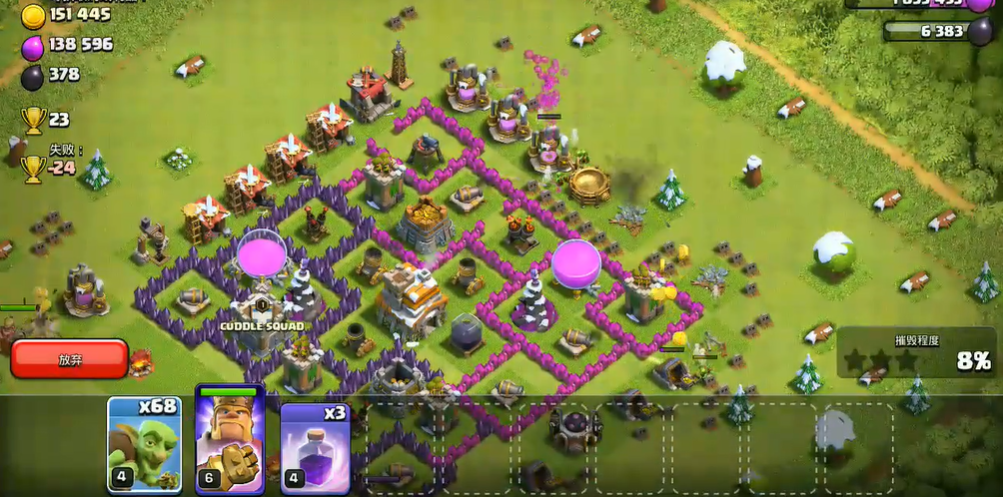 部落冲突想要快速积累大量资源,核心是高效打鱼掠夺、最大化被动产出、参与活动奖励、合理护资控杯,搭配专属偷资源流派,就能实现金币、圣水与暗黑重油快速爆满。打鱼是资源主要来源,优先锁定死鱼与资源溢出的活跃玩家,杯段控制在金杯与水晶杯区间,这个区间资源储量高且防御压力适中,搜索时优先查看储金罐、圣水瓶与暗黑重油罐的资源量,避开防御密集阵型,选择资源建筑外置或集中的目标,大幅提升单次掠夺收益。低本阶段以哥布林为主力,搭配巨人抗伤,利用哥布林对资源建筑的伤害加成快速收割,解锁超级部队后,超级哥布林凭借隐身特性成为偷资源核心,配合弹跳与狂暴法术,可无视多数陷阱与外围防御,直取核心仓库,高本则用根蔓骑士前排抗伤开墙,配合女巫与超级弓箭手清理资源建筑,兼顾效率与稳定性。