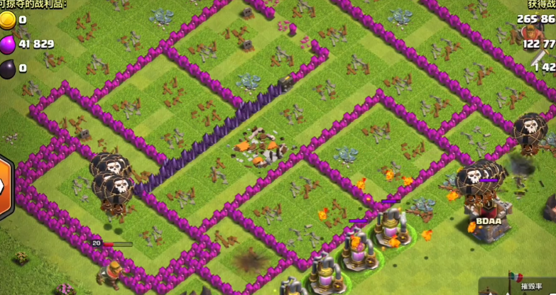 法术搭配是克制金龙的重要补充,雷电法术可直接削减金龙血量,尤其适合攻击聚集的金龙,能快速压低其血线,为兵种击杀创造条件;冰冻法术则能精准打断金龙的攻击节奏,在金龙准备释放高伤害溅射时冰冻,既能保护己方部队,又能延长地狱飞龙、龙骑士的安全输出时间。可搭配少量火箭气球兵,一方面吸引金龙和防空建筑的火力,另一方面快速清理残留的防空火箭、空气炮,切断金龙的防御依托,让核心输出单位无干扰地集火金龙,提升整个战术的容错率。