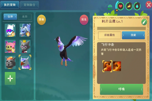 准备充足饲料后,便可前往狮鹫常出没的区域寻找目标,其主要刷新在晨雾森林、孤影雪山、南极星灯塔、拉鲁火山等高山与悬崖地带,春日海岸左侧岛屿及部分偏远小岛为固定必刷点。找到狮鹫后,优先采用远程攻击方式消耗其血量,使用弓箭或寒冰魔法保持安全距离输出,避免被狮鹫的飞行冲击与爪击命中,待其血量降至较低水平时,切换木棒近身击晕。击晕后需快速打开背包,连续喂食狮鹫饲料,每喂食一包观察状态,直至狮鹫头顶出现黄色爱心标志,即代表驯服成功。过程中需注意把控攻击力度,防止误将狮鹫击杀,同时留意周围环境,避免其他野生生物干扰导致驯服失败。
