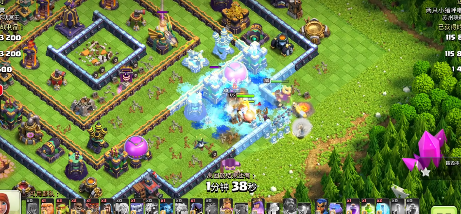 确定目标后,需搭配对应流派提升胜率,低本阶段以胖法流、石法流为主,用巨人、石头人前排抗伤,法师后排输出,炸弹人开墙,适合城墙简单、防御分散的目标。中本阶段天女矿猪流、雷龙流更实用,天女矿猪流以天使配合女王清边,矿工挖地绕开陷阱与城墙,野猪骑士补防,适配多数常规阵型;雷龙流凭借连锁闪电伤害,一字划即可清边毁防,适合密集阵型与防空薄弱的目标。高本阶段超蓝狗球流、超级雪怪流强势,超级蓝胖子与熔岩猎犬分别承担地面与空中肉盾,气球兵、超级雪怪爆发输出,搭配冰冻、狂暴法术控制核心防御,能突破满防复杂阵型。进攻时先以少量兵力引出并清除援军,再用英雄与小部队完成清边,防止主力跑偏,随后主力部队配合攻城机器切入核心区域,法术精准覆盖高危防御点,最后用剩余兵力清理残余建筑。