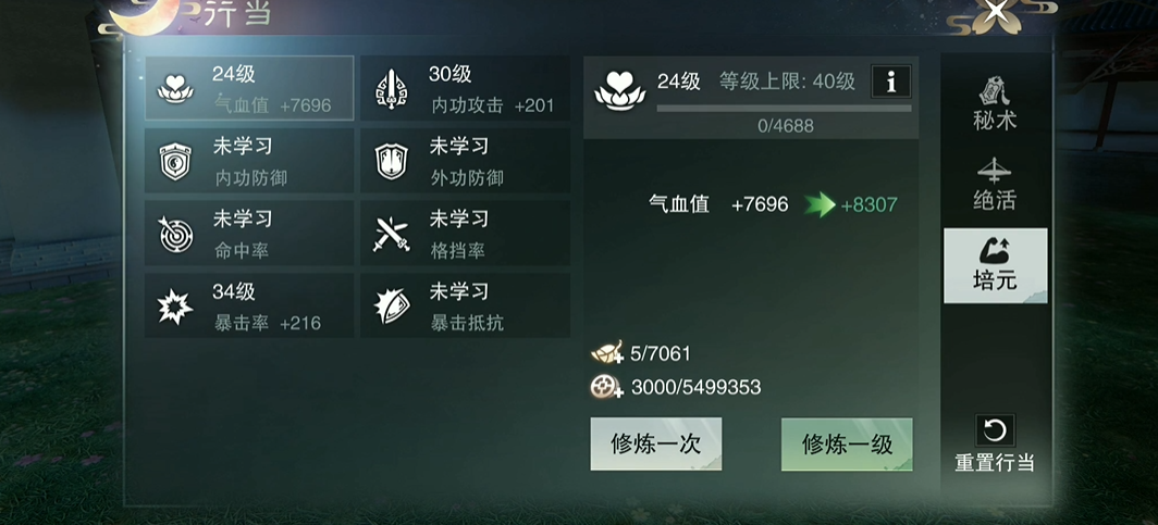楚留香新传中精元核心用于快速提升招式与心法等级,是武学养成的核心资源,同时可辅助触发部分剧情奖励、搭配奇物强化属性,合理分配能快速提升角色战斗能力。精元作为武学修炼的核心媒介,直接作用于技能体系,每一种招式与心法都有固定的精元消耗标准,满足需求即可直接提升等级,无需依赖战斗熟练度积累,不同武学的精元需求差异明显,基础招式如宋甜儿的自带技能满级仅需125点精元,而高阶攻击武学如龙游剑满级则需要2500点精元,心法类的寒玉功满级也需1000点精元,修炼前需明确目标技能的消耗阈值。角色才识属性会影响精元使用效率,才识数值越高,部分武学修炼时的精元消耗会适度降低,尤其楚留香修炼寒玉功等专属心法时无瓶颈限制,精元消耗更为划算,优先提升核心角色的关键武学,能让精元发挥最大战力价值。