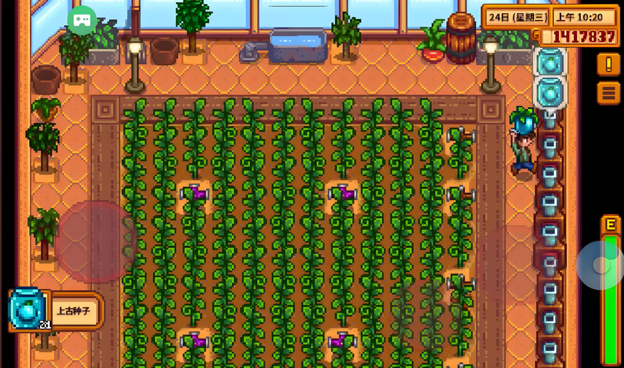 第二年春季可尝试引入上古水果,前提是前两年已通过种子制造机或沙漠商人积累足够种子。上古水果成熟后每7天收获一次,跨越春夏秋三季,长期收益远超普通作物。但需注意其生长周期较长,需搭配速度增幅肥料确保在春季末前完成首次收获。若上古种子储备不足,可保留部分土地种植大黄,其13天的生长周期与高售价能有效填补收益空档。