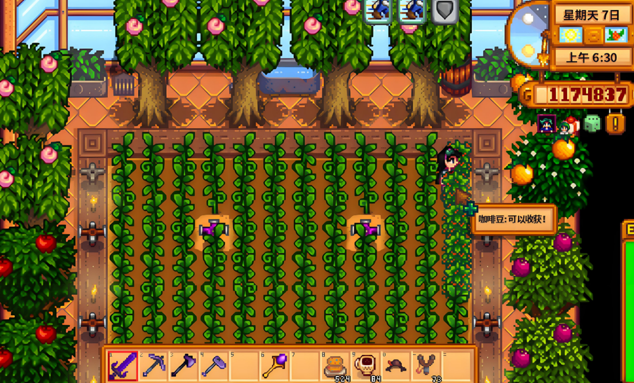 对于追求多样化的玩家,咖啡豆是值得考虑的选择。虽然单次收益较低,但每两天收获一次的频率可提供稳定原料供应,加工后制成咖啡或浓缩咖啡既能自用也能高价出售。咖啡豆适合与其他高价值作物间作,尤其在拥有自动化采集设备的农场中效率更高。甘蓝菜因其快速生长和中等售价,适合作为临时补种作物,应对意外天气或资源短缺。