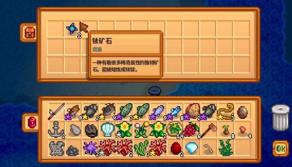 旅行货车和交易系统是补充铱锭的辅助渠道。每周五和周日出现在森林的旅行货车会随机出售铱锭,价格在3000-5000金之间波动。沙漠商人有时会以特殊物品兑换铱锭,建议随身携带多余资源以备交换。通过鱼塘养殖大海参或黄貂鱼也有概率获得铱矿石,但需要较长的培育周期。