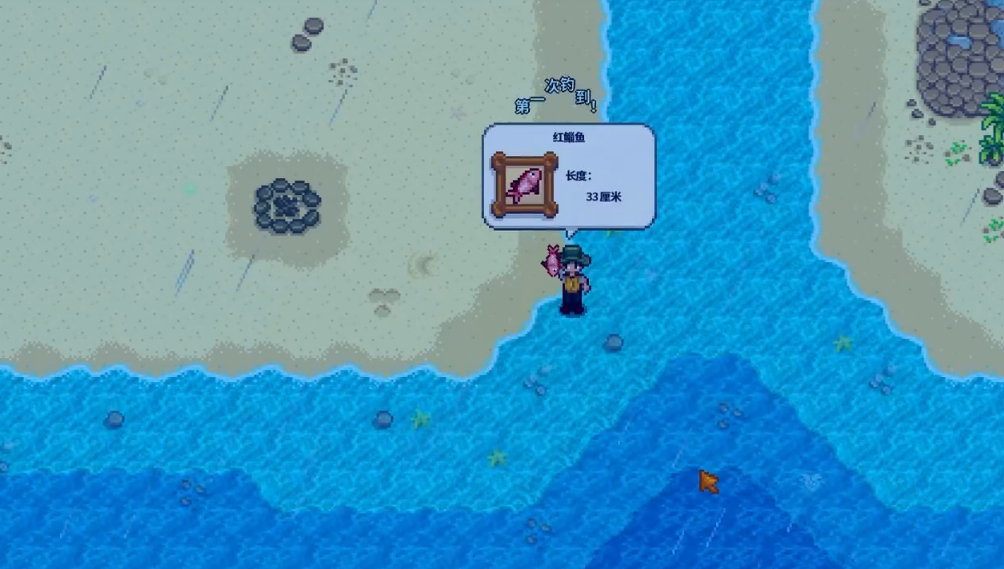 海滨区域是首选,尤其是东码头附近,这里不仅能钓到红鲷鱼,还有机会遇到高价值的绯红鱼(夏季鱼王)。秘密森林的池塘在雨天会刷新鲶鱼,但需提前用钢斧砍伐挡路的木头才能进入。矿井湖泊虽然不受雨天影响,但岩浆鳗鱼等高价值鱼类仍值得尝试。若追求效率,建议优先前往海滨,因海洋鱼类的种类和收益在雨天显著提升。