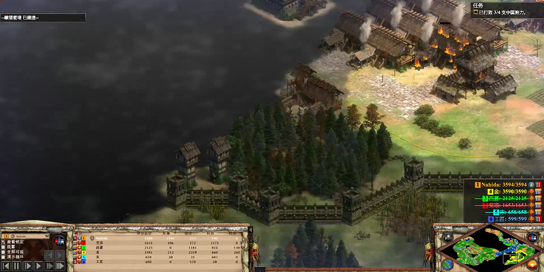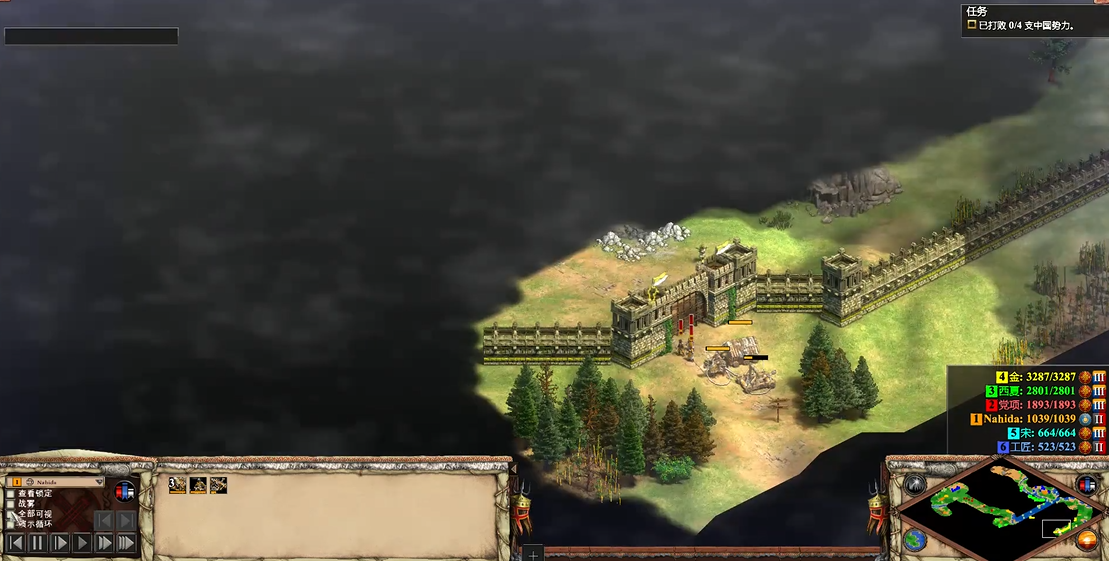 本关的核心目标是击败地图上的三个敌对势力:西夏、契丹与金,其中金国是最终的敌人,其基地坐落于地图东侧一个需要渡海才能抵达的大型岛屿上。开局时玩家位于地图西侧,拥有一支由骑兵、步兵和少量攻城武器组成的初始部队。攻略的关键在于高效利用开局提供的资源与单位,迅速建立经济与军事优势,并规划好针对不同敌人的打击顺序。通常的战略建议是优先消灭较弱的西夏与契丹,稳固大陆基地并积累资源,同时阻止金国建造世界奇观以达成额外成就,为最后渡海总攻做好准备。