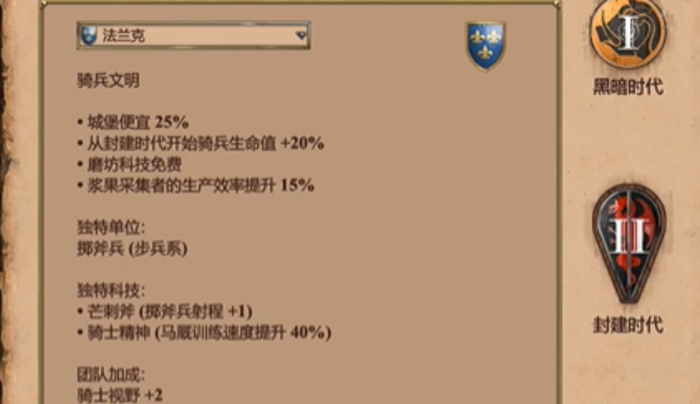 法兰克则可以通过其强大的骑兵体系来对抗波斯。圣殿骑士(游侠)作为顶级重装骑兵,拥有可观的战斗力,可以作为正面抗衡的力量之一。法兰克也可以生产掷矛兵来应对波斯可能搭配的弓箭手单位,而轻骑兵或圣殿骑士还能在混战中快速侧翼切入,攻击波斯阵型中脆弱的远程支援单位,如弩炮或火枪手,从而瓦解其攻防体系。