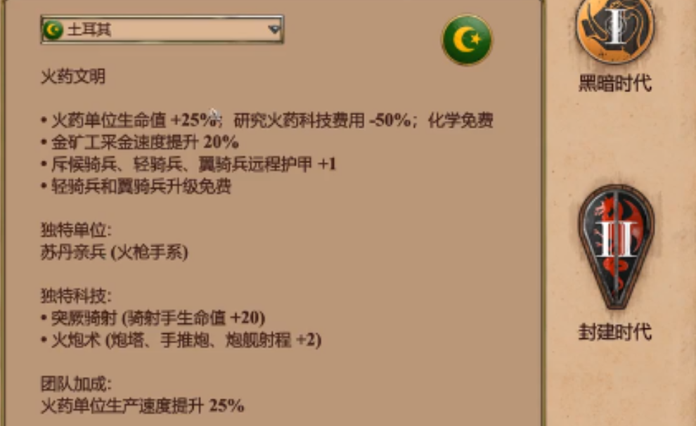 土耳其作为火药文明,在中后期对抗波斯时优势明显。其特色兵种苏丹亲兵(火枪手)攻击力强大,能够对战象造成显著伤害。搭配手推炮(火炮),土耳其部队可以在远距离对波斯的战象集群和建筑造成毁灭性打击。这种组合攻守兼备,爆发力强,但需要注意保护脆弱的火药单位,并平稳度过前期相对弱势的阶段。