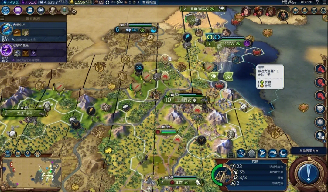 城市建造严格遵循优先级顺序,首都先补纪念碑提升文化扩张速度,紧接着修建粮仓拉高人口上限,随后落地学院与剧院广场两大核心区域,合理利用森林砍伐瞬间补足产能,快速完工关键建筑与移民单位,平稳铺开多城格局。每种奢侈资源仅生效一次宜居加成,多余资源用来外交交易换取金币、科技与友好关系,战略资源提前储备保障兵种迭代,派遣使者绑定各类城邦,获取专属产出加成与军事支援,不用开战就能稳步拉大发展优势。