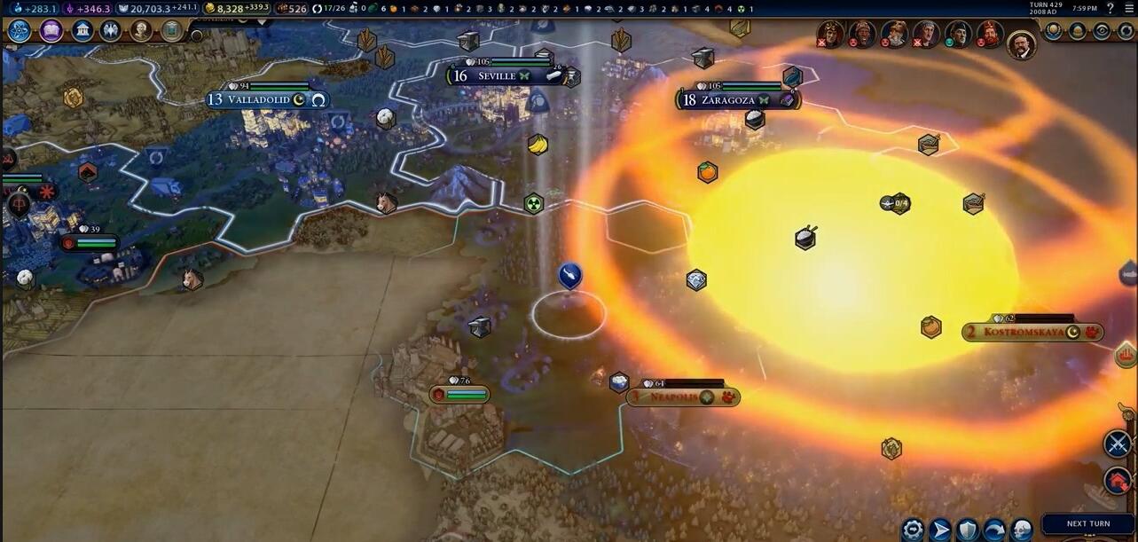 黄金6城并非僵化的固定布局,可根据实际地形灵活调整,出现地形割裂或资源分散时,可缩减为黄金4城或扩展为黄金7城变体,核心始终是让尽可能多的城市共享区域辐射。前期需快速产出移民,控制扩张节奏,避免因经济与粮食不足拖慢发展,中期集中完成工业区与娱乐区建设,后期依靠超高产能快速建造奇观、军队与太空项目,无论是科技胜利、文化胜利还是征服胜利,都能凭借高效生产力占据绝对优势。